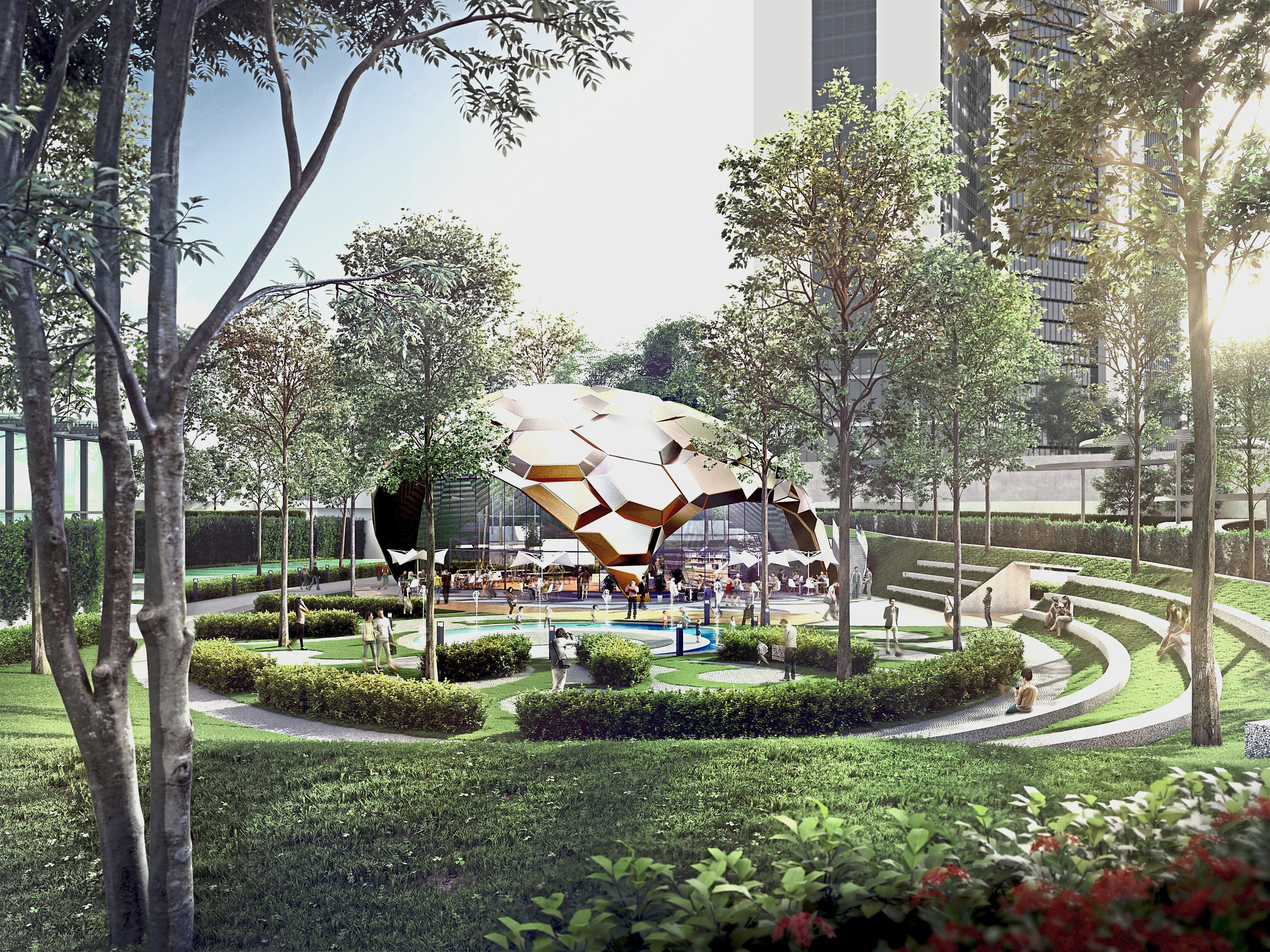 Green lungs are threaded through the development to create a series of parks, gardens and green pockets. The green centrepiece is a four-acre park that sprawls across the roof of the Retail Mall.