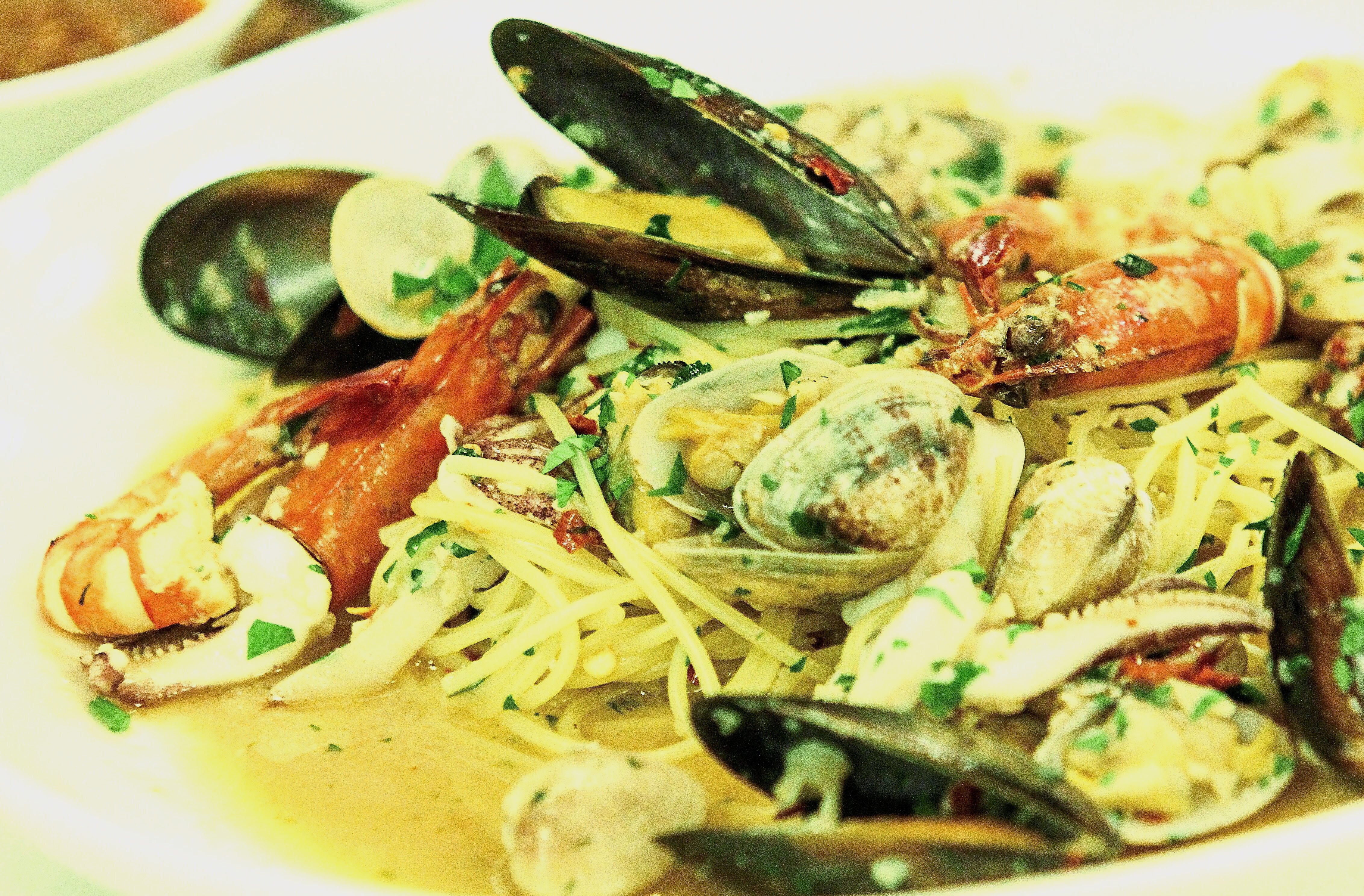 The menu includes the Frutti deMare (pictured), aptly named as it overflows with the fruits of the sea –octopus, prawns and an assortment of shellfish.