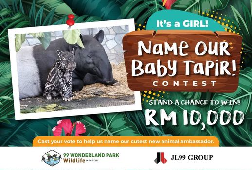 For this unnamed female baby tapir, 99 Wonderland Park Wildlife In The City is holding the Name our Baby Tapir contest to attract Malaysians to celebrate its birth and create awareness of the endangered species.