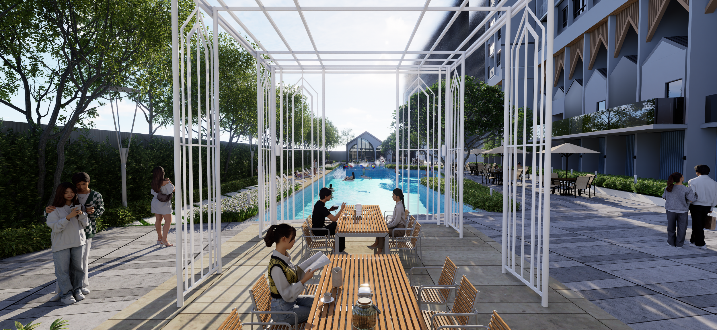 Bask in comfort and elegance — the Pool Pavilion offers a stylish retreat beside the sparkling waters of KSL Blossom Square.