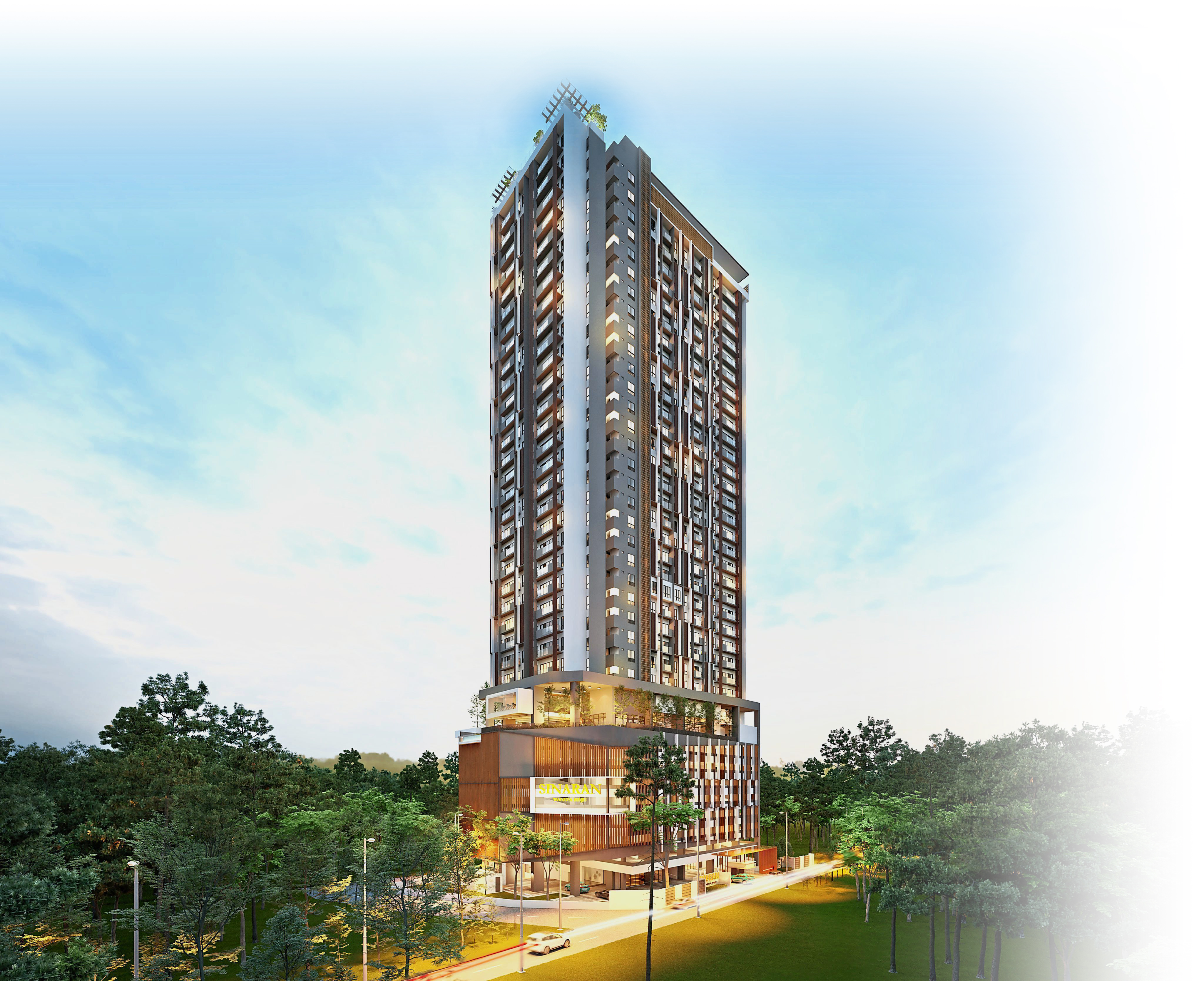 Sinaran shows its concern for the environment by adopting key steps such as recycling water for landscape plant use, using LED lights in the car park to reduce power consumption and implementing a north-south orientation for cooler dwellings.
