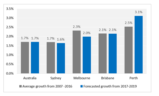 ABS forecast Perth’s population to grow by 3.1% per annum from 2017 to 2019. The growth is expected to have a positive impact on housing demand.
