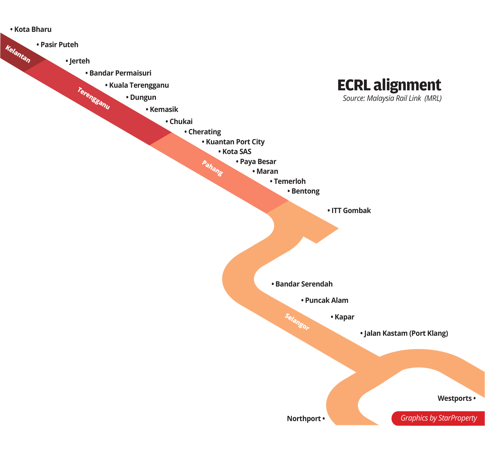 The 665km-long East Coast Rail Link (ECRL), stretching from Kota Bharu in Kelantan, traverses Terengganu and Pahang before ending in Port Klang, Selangor, is touted as a catalyst for development in the east coast, especially for the East Coast Economic Region (ECER).