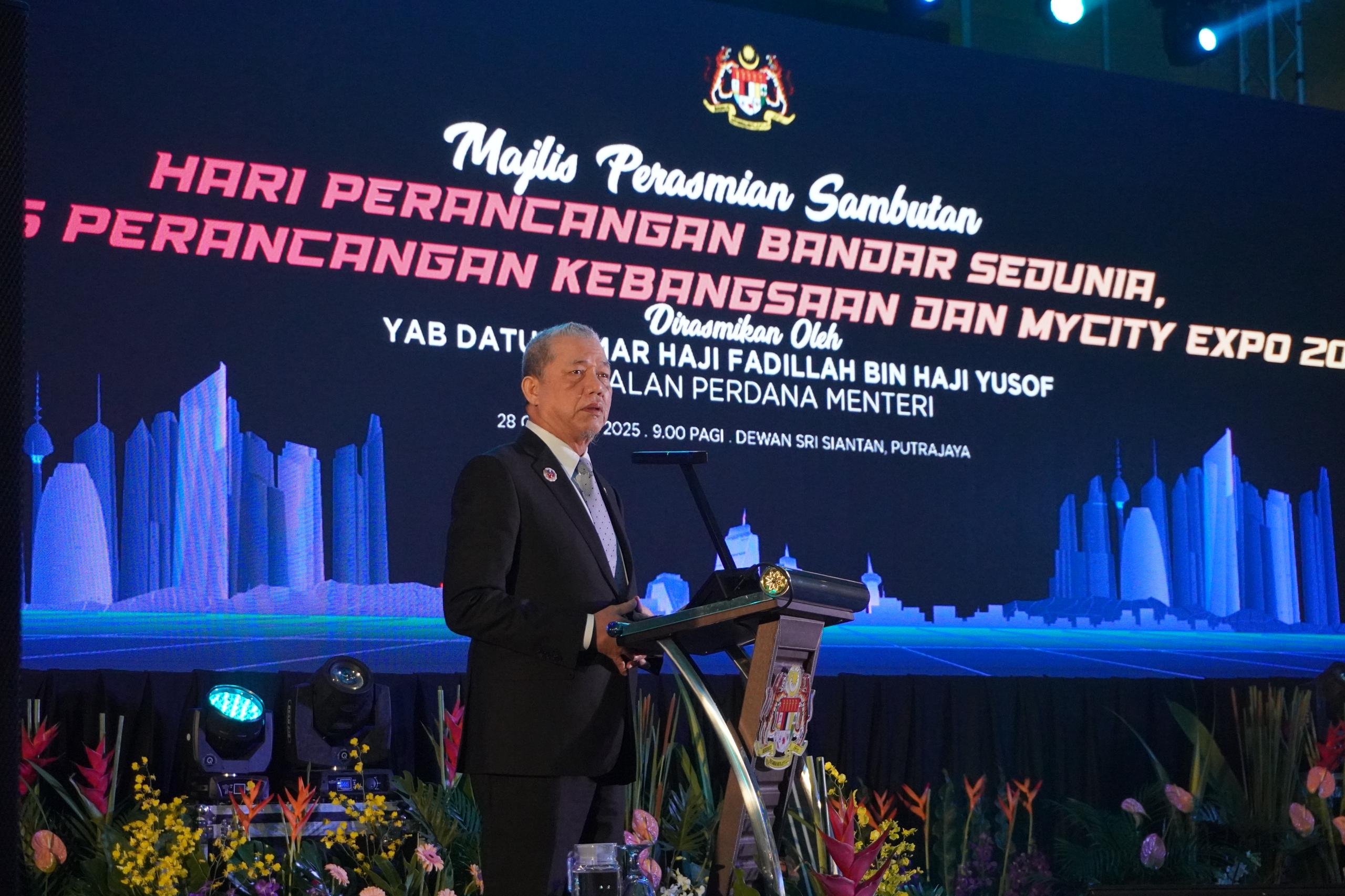 Fadillah making his speech at the National Level World Urban Planning Day 2025 Celebration, National Planning Congress (NPC) and MyCity Expo where the award presentation ceremony was held.