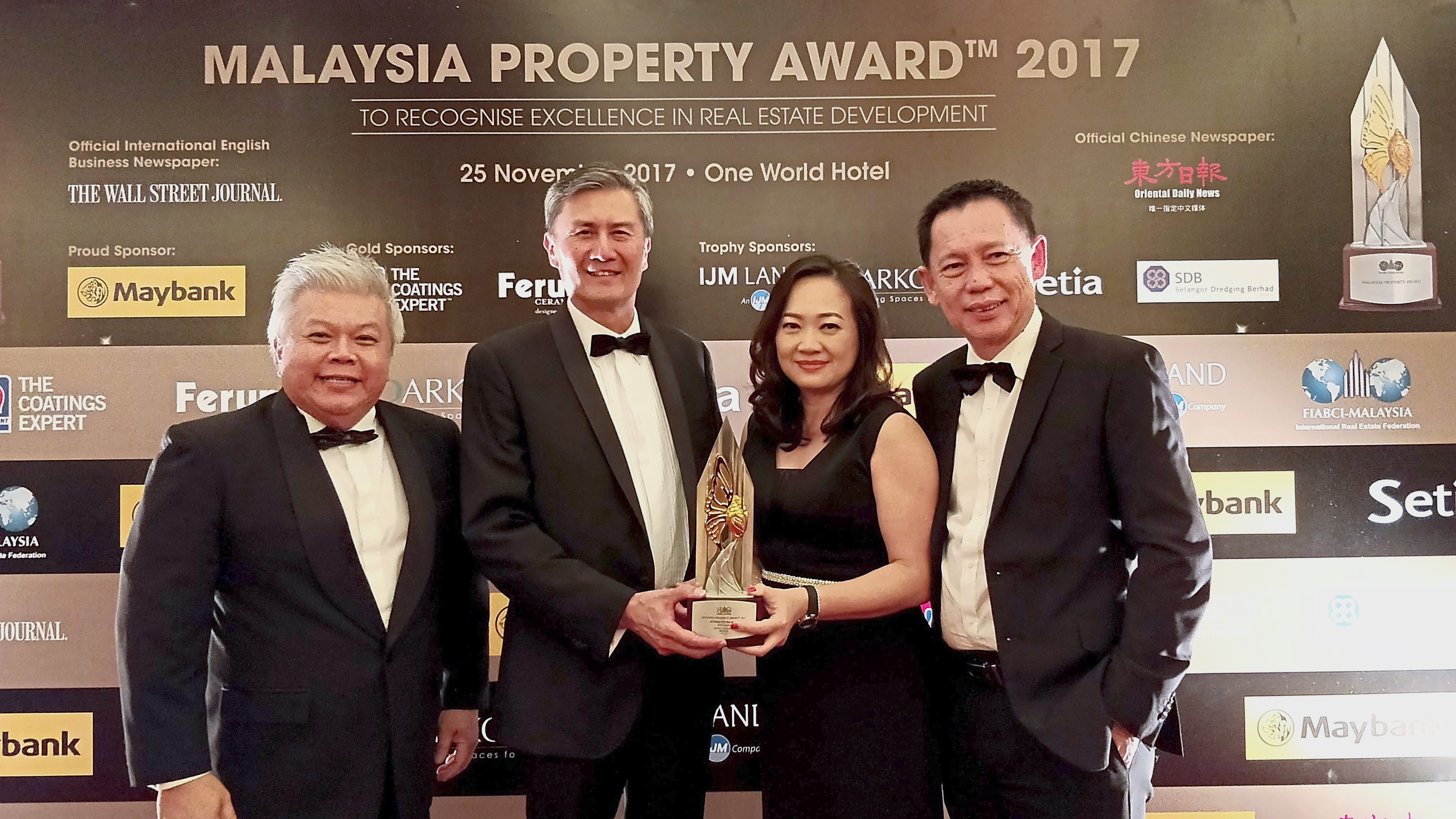 (L-R) Sunway Malls chief operating officer Kevin Tan, Sunway REIT Management Sdn Bhd chief executive officer Datuk Jeffrey Ng Tiong Lip, Phang and Chan celebrating Sunway Putra Mall’s recent victory in Malaysia Property Award 2017 ( Retail Category).