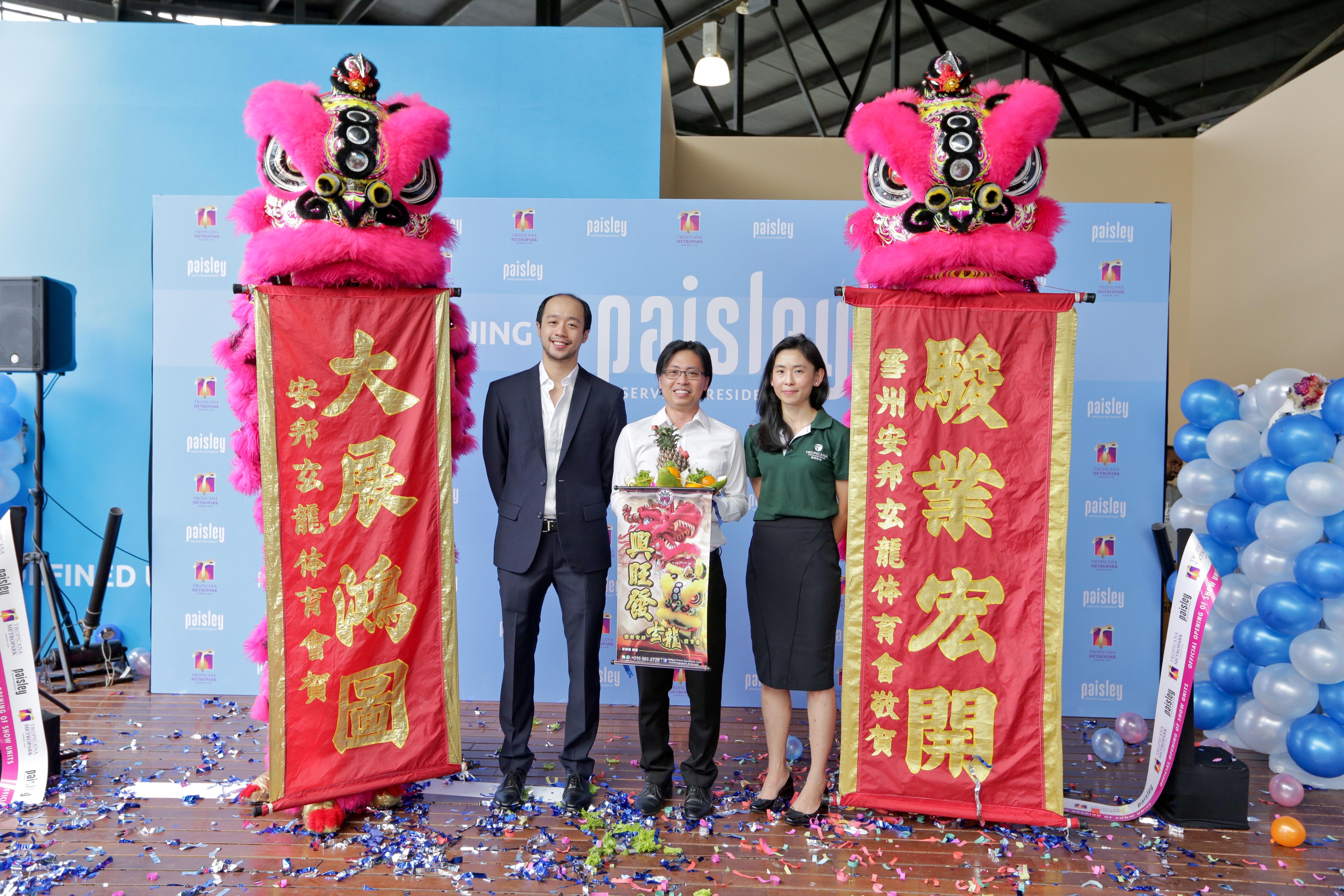From left : Tropicana Group Berhad executive director Dion Tan, Deputy General Manager Tang Wei Cheak and executive director of sales and marketing Ung Lay Ting at the launch of Paisley Residence.