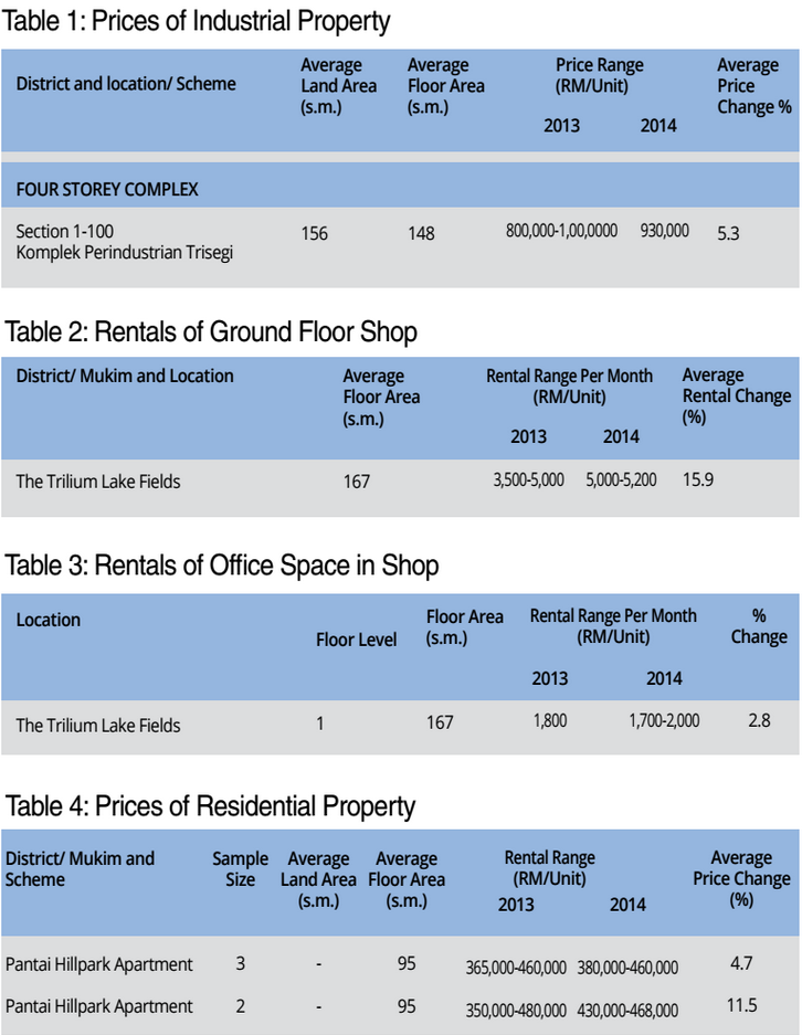 We decided to take a look at this area which, while predominantly industrial, still holds plenty of room for other aspects such as residential, entertainment and commercial. The transacted prices involved have been gathered from the Property Market Report 2014 of the Jabatan Penilaian dan Perkhidmatan Harta (JPPH).