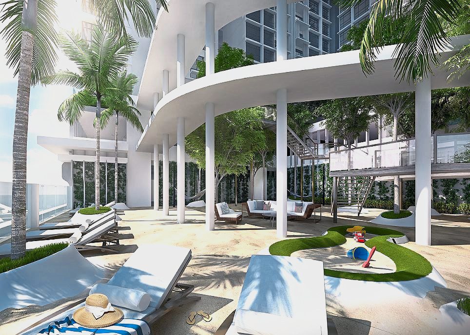 These façade finishes are not just intended for aesthetics purposes. In fact, the ns along the balcony of the building provide shade and a layered effect for residents to enjoy the stunning views of the sea and marina area.