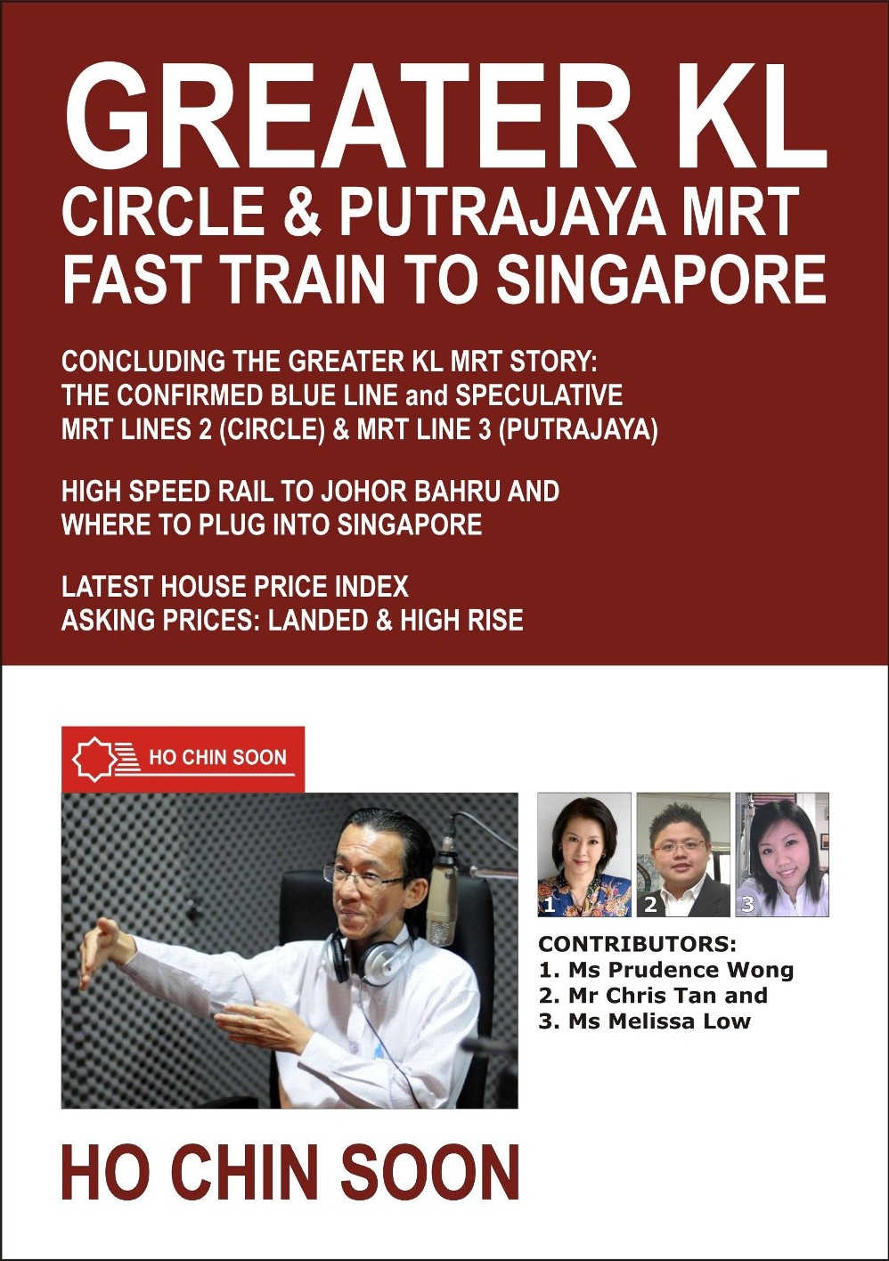 Ho Chin Soon’s fifth book, published in 2011, which explored the then impending and possible MRT lines in Kuala Lumpur and High Speed Rail to Singapore, proved to be an insightful take on the development of inner city and inter-city transportation on real estate. Besides that, Ho has also discussed the trends of property developments and house prices in Malaysian major cities as well as Singapore, though much emphasis remained on the Greater KL, which was still the locus of Malaysian real estate industry.