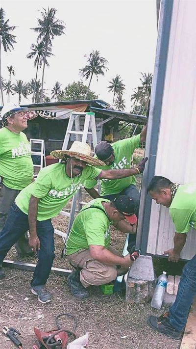 The group then began building cabin homes for flood victims with funds from sponsors.