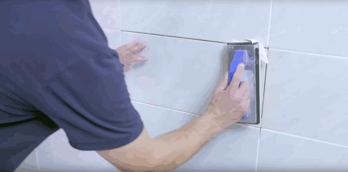 4. Once the grout has dried, scrub the tile faces of any grout residue with a soft sponge – dip the sponge in white vinegar and apply some elbow grease.