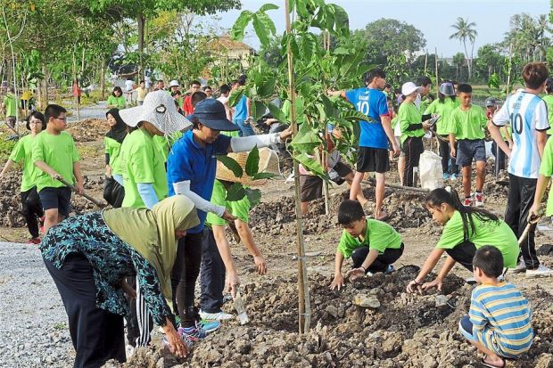 Teachers, pupils and parents doing their bit by enriching Mother Earth through the mass tree planting project at SJKC Boon Teik in Tokai, Kedah. Besides 125 Tecoma trees, 50 Golden raintrees were also planted at the surrounding of the school’s field. — Photos: G.C. TAN/The Star