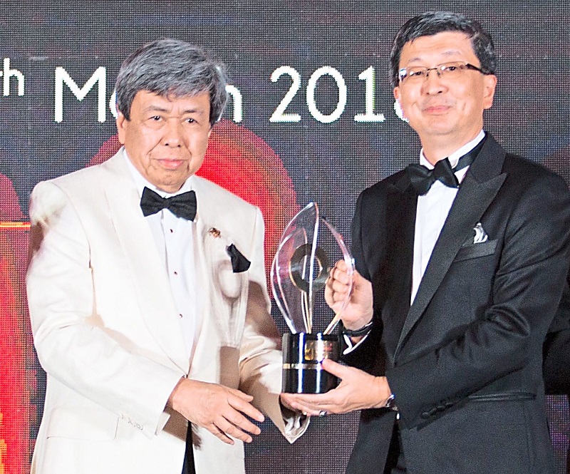 The Sultan of Selangor, Sultan Sharafuddin Idris Shah, handing over The All-Star Award, Top Ranked Developer of the Year trophy, to LBS Bina Group Bhd's managing director, Tan Sri Lim Hock San.