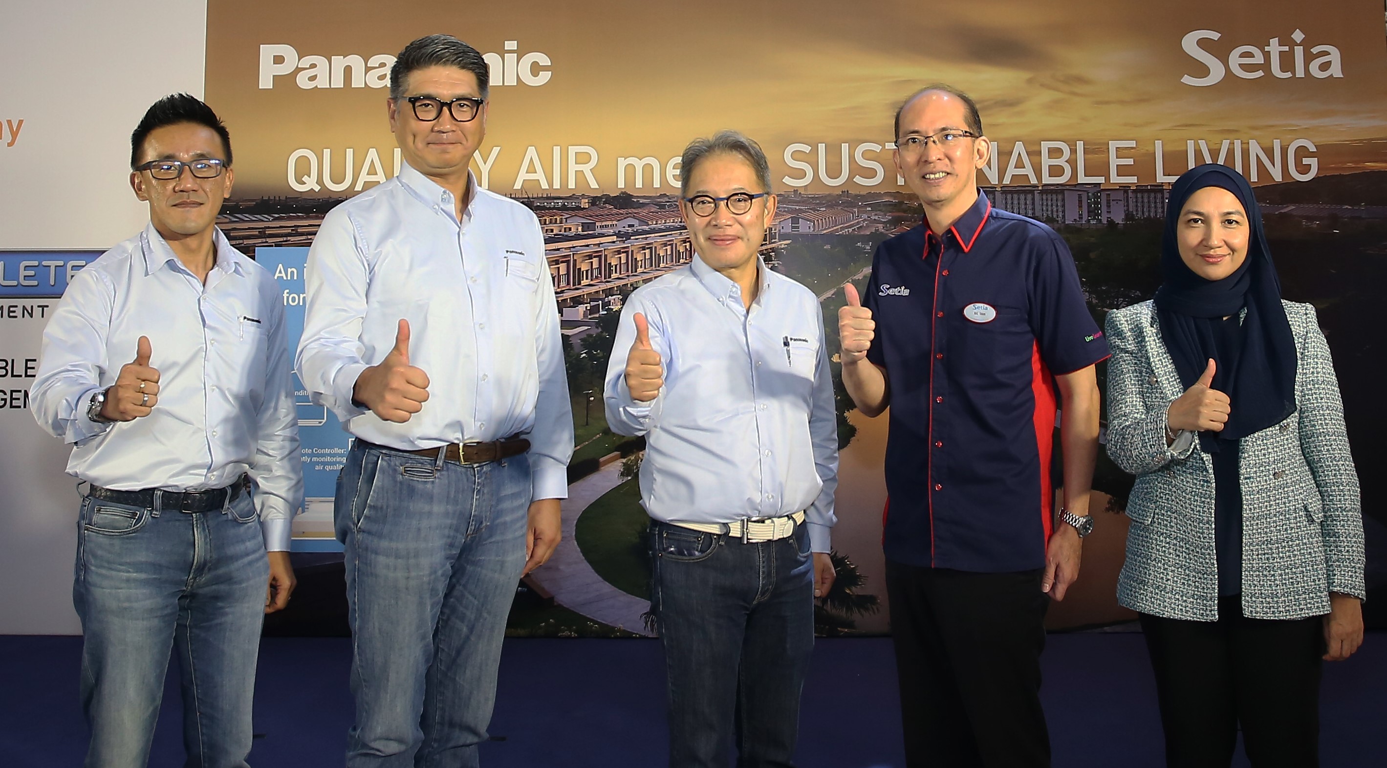 (From left) Khan, Yoshida, Suganuma, Tan and Lindayani give the thumbs up to the joint effort between Panasonic Malaysia and SP Setia.