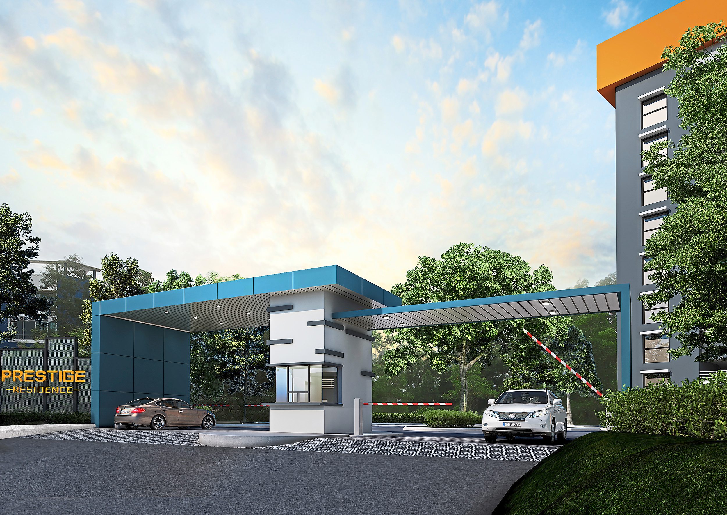 Prestige Residence embedded features that make the homes special. While minimalism reigns supreme for its towering façade and other structures, colour contrast in linear lines is incorporated in the buildings and common areas to give a cheerful quality to the entire eight acres estate. Pockets of greenery create mini sanctuaries in the open space where a myriad of other outdoor facilities are also located. This combination of vibrant forms and greenery makes the everyday starter home a modern and refreshing habitat.