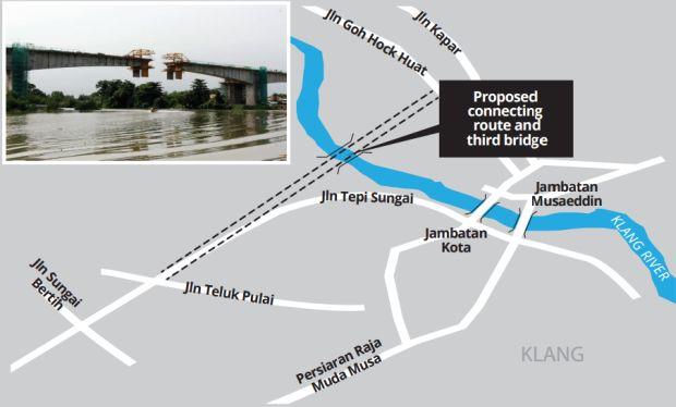 He said the 1.2km-long bridge, which would connect Jalan Goh Hock Huat to Jalan Sungai Bertih, was aimed at facilitating traffic from Jalan Kapar, Jalan Meru, Kuala Lumpur-Klang Federal Highway and the New Klang Valley Expressway (NKVE) to Port Klang.
