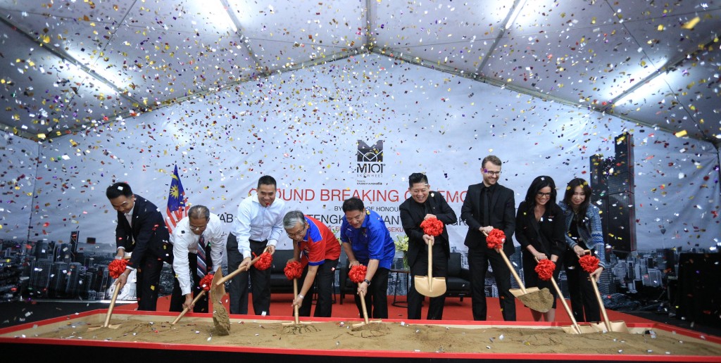 Official ground breaking ceremony of M101 SkyWheel: (From left) General Manager, Zhongji Construction Sdn Bhd general manager Cui Hai Zhen, Perbadanan Pembangunan Kampong Baru chief executive officer Datuk Haji Mahadi Bin Che Ngah, Perbadanan Pembangunan Kampong Baru chairman Datuk Affendi Zahar, Kuala Lumpur City Hall executive director of planning Haji Mohd Najib Nordin Bin Haji Mohd, Minister of Federal Territories Dato’ Seri Tengku Adnan Tengku Mansor, M101 Entity Sdn Bhd (M101) founder Dato’ Seth Yap Ting Hau, Studio F.A. Porsche studio manager (Singapore) Tobias Huettl, Planet Hollywood Hotels Worldwide vice president of brand marketing Robyn Peot and M101 group director Datin Lea Chan Heng Si.