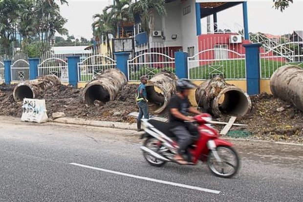 The works are part of Petaling Jaya City Council’s (MBPJ) flood mitigation plans, where construction is taking place on both sides of the road shoulders.
