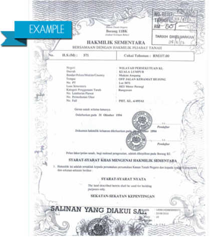 But typically, multiple houses or apartment units would be built on the land and sold off individually. So ideally, the “Master Title” would be subdivided into multiple smaller titles before being sold to individual purchasers. For landed properties, these are known as “Individual Titles”. For high rise properties, these are known as “Strata Titles”. Once subdivided, to transfer ownership, a Memorandum of Transfer (MoT) would be filed at the Land Office. The purchaser’s name would appear on the title deed itself, making them the new rightful owner of the property.