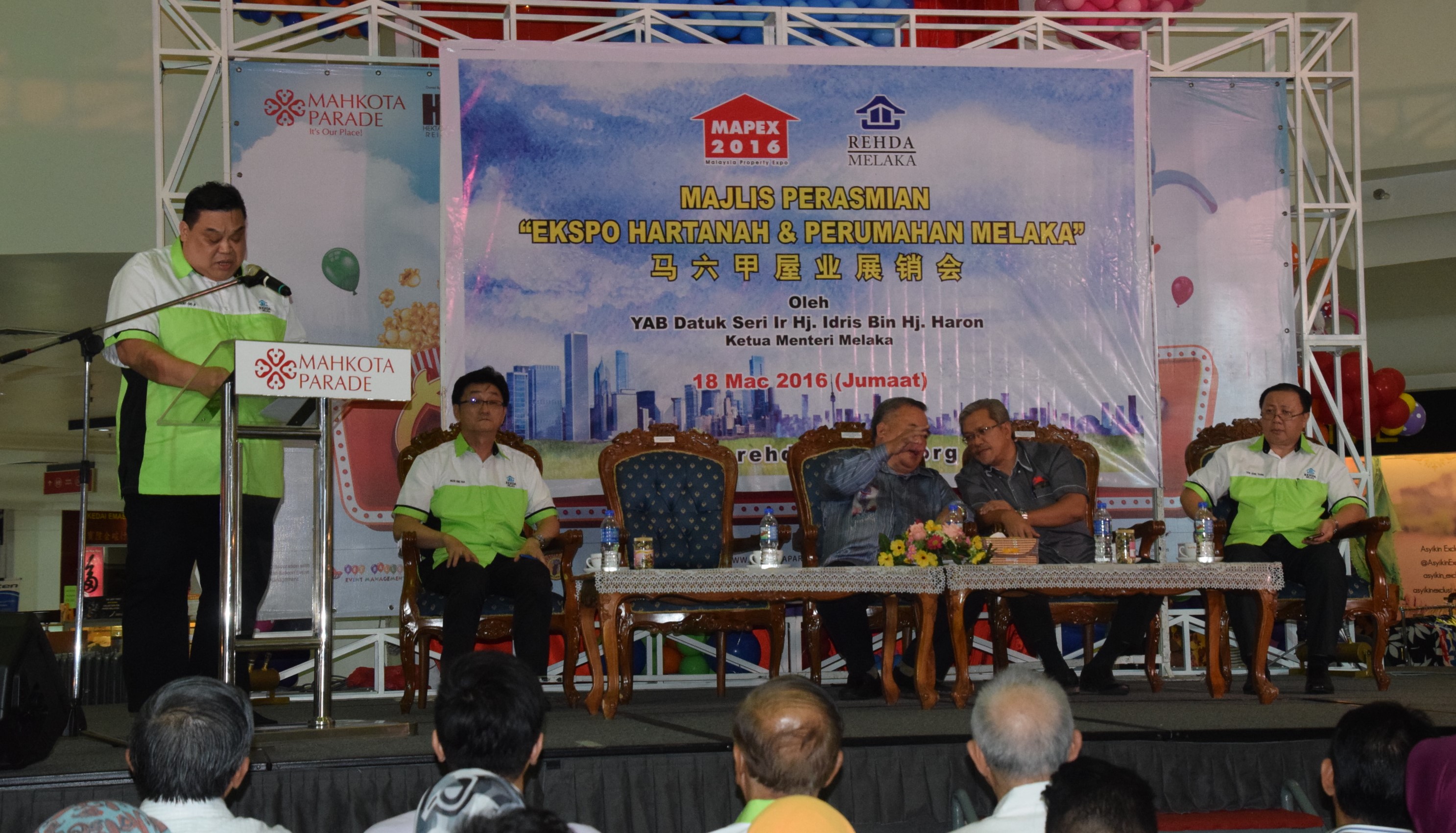 Transcript of Rehda Melaka chairman Datuk Anthony Adam Cho Tian Han’s welcoming speech at the opening ceremony of 1st MAPEX 2016 Opening Ceremony in Mahkota Parade, Melaka on Friday, March 18.