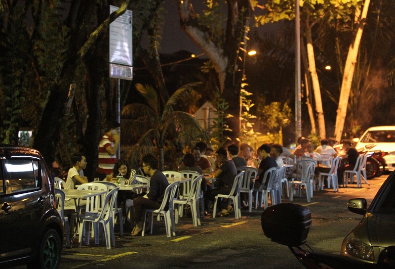 Booked spots: A restaurant along Lorong Datuk Sulaiman 7 blatantly disregards the law by placing their tables and chairs on the road at night.