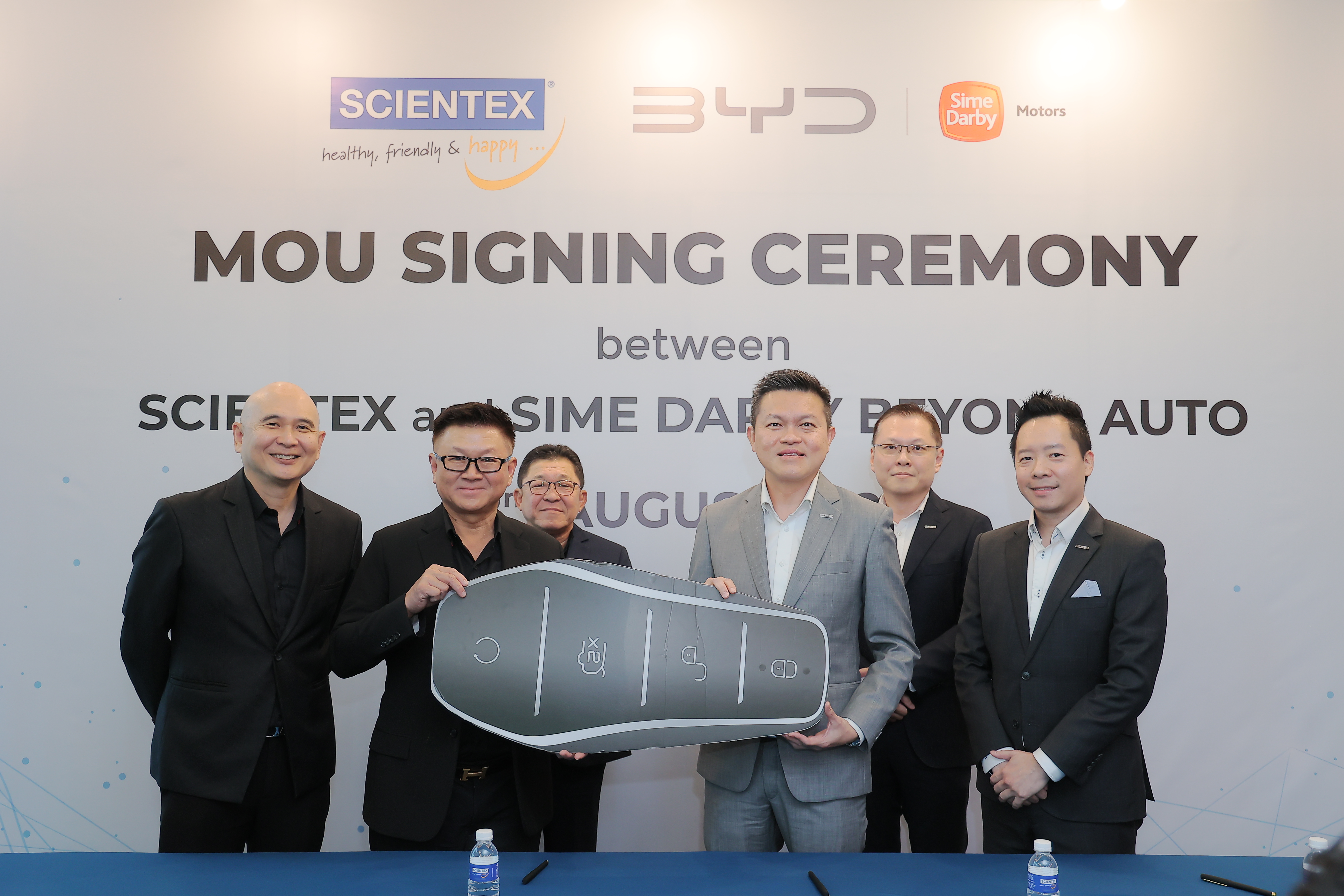 Signing the MoU were Scientex chief operating officer Datuk Alex Khaw, executive director Koay Teik Chuan and chief executive officer Lim Peng Jin. Representing Sime Darby Motors were managing director Jeffrey Gan and head of sales distribution Calvin Sze-Tho. BYD Malaysia was represented by its deputy general manager Tay Ee Ran.