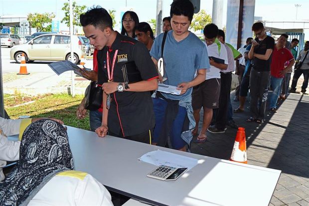 Bridge users lining up to buy electronic cards and smart tags following the start of the full Electronic Toll Collection system at the toll plaza in Batu Kawan.