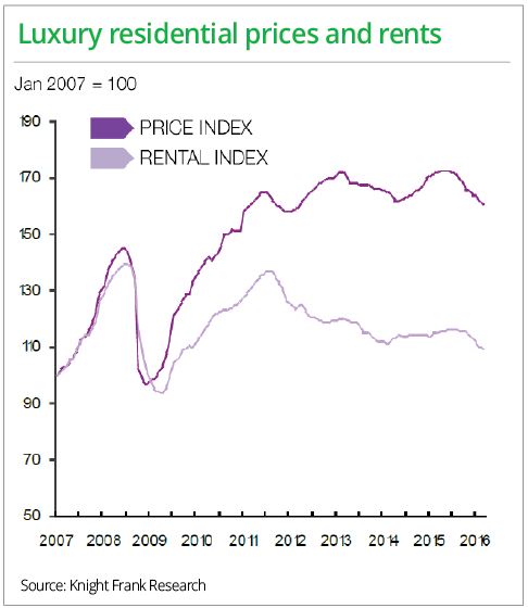 Although overall luxury home prices are expected to drop 5% this year, prices of super-luxury houses and apartments should remain stable. Mass market prices could drop up to 10%.