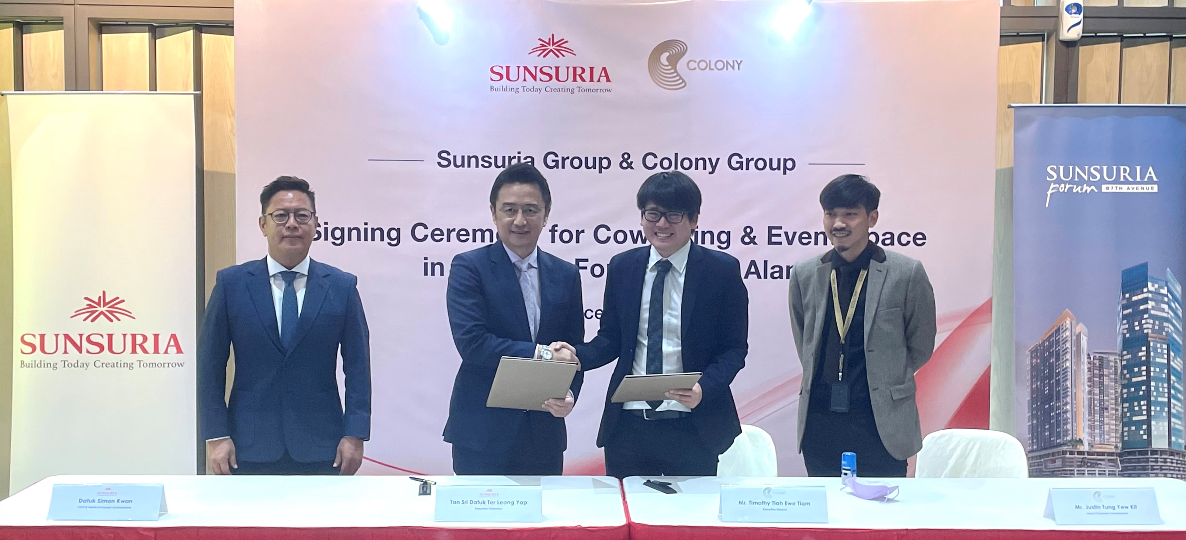 Also present at the signing ceremony were Sunsuria chief operating officer Datuk Simon Kwan and Colony business development head Justin Tung Yew Kit.