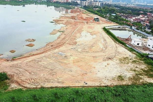 An aerial view of the area where the detention ponds are being constructed on reclaimed land.TAMAN Wahyu residents are upset over noise and air pollution in their neighbourhood caused by the construction of three flood detention ponds since last year.The residents claim that works such as piling...