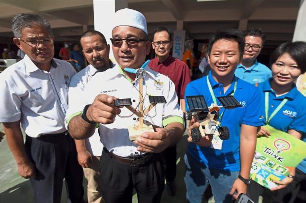 (From third left) Rozali showing a solar-powered fan while Yeoh shows a solar-powered remote control car with Ang and other officials at the JCI 8R Concept Carnival at the Kota Permai market in Bukit Mertajam.THE Seberang Prai Municipal Council is targeting to turn Seberang Prai into a smart city...