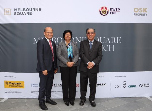 From left to right:OSK Group executive chairman Tan Sri Ong Leong Huat, High Commissioner-Designate of Malaysia to Australia Datuk Sudha Devi K R Vasudevan, Employees Provident Fund chief executive officer Datuk Shahril Ridza Ridzuan at the Official Launch of Melbourne Square in Melbourne,...