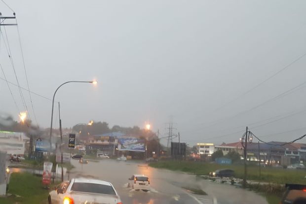 BY STEPHANIE LEEKOTA KINABALU: A heavy downpour late Sunday is causing massive flash floods in many parts of the city.Flood waters, which started rising at 5pm, have caused traffic congestion in several areas too.The affected areas include Penampang, Lintas, Bundusan, Foh Sang, Dah Yeh Villa, City...