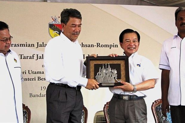 Lee (second from right) presenting a souvenir to Mohamad during the official opening ceremony. Looking on are Shamshulkahar (left) and Manickam.IOI Properties Group Bhd, the developer of Bandar IOI @ Jempol, has completed the Mahsan-Rompin bypass and the upgrading of Jalan Bandar IOI-Mahsan.The...