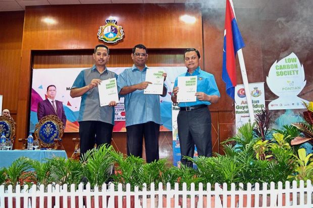 Ayub (centre), Pontian District Council (MDP) president Kamaluddin Jamal (left) and Pontian district officer Onn Jabbar taking a group photo after launching the Low Carbon Town Hall Session at Dewan Jubli Intan in Pontian.PONTIAN: Embankments will be built along Sungai Segamat under the latest...