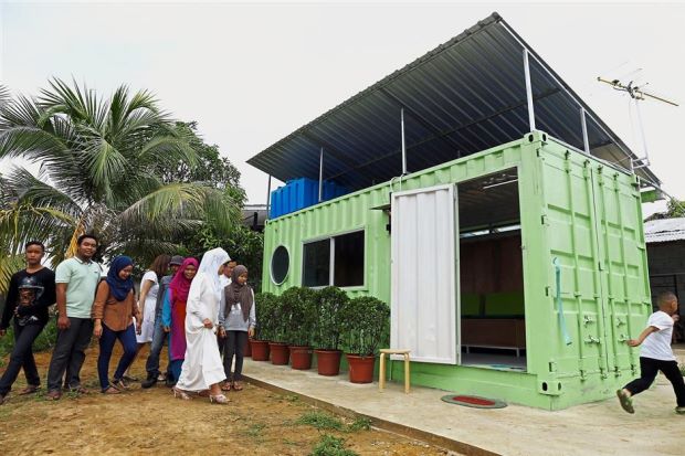 BY GERYL OGILVYFatimah (in white dress) visiting the container house in Kampung Buntal, Santubong, after presenting it to Shukeri. — ZULAZHAR SHEBLEE / THE STARKUCHING: Odd-job worker Shukeri Abdul Wahed and his family of seven have been living uncomfortably in a makeshift house for over a decade...