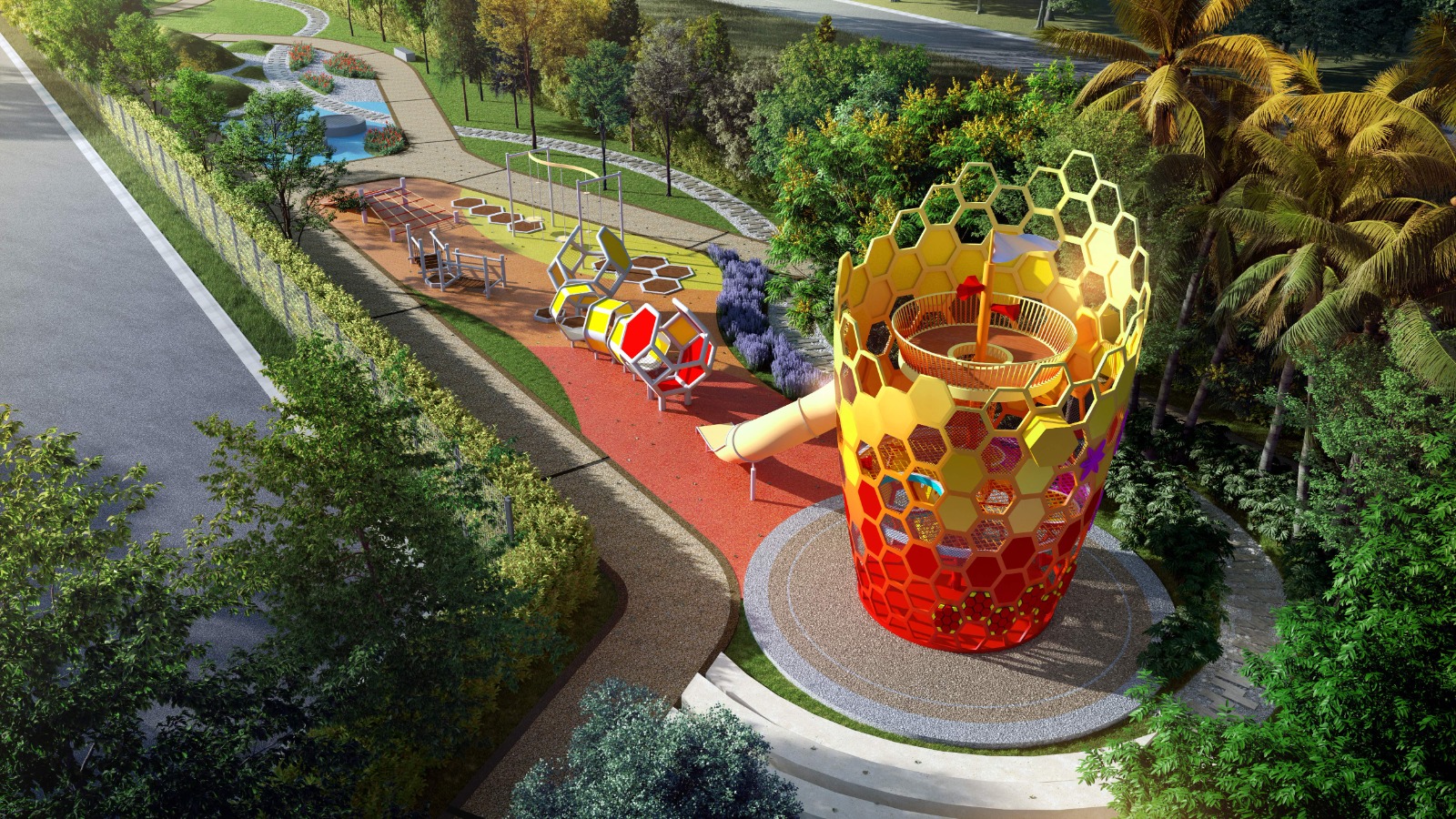 To support the residents’ health and wellness goals, Sunway Property has designed 4.3 acres of facilities which span three levels, enveloped in a lush natural environment, providing a 1.3-acre linear park, a mini jungle trail, skate park, sensory garden, a 1km jogging cum cycling track, a 50m infinity pool, jacuzzi, badminton cum multipurpose court, basketball court, gym room, yoga deck, and a rooftop garden promoting healthy living.