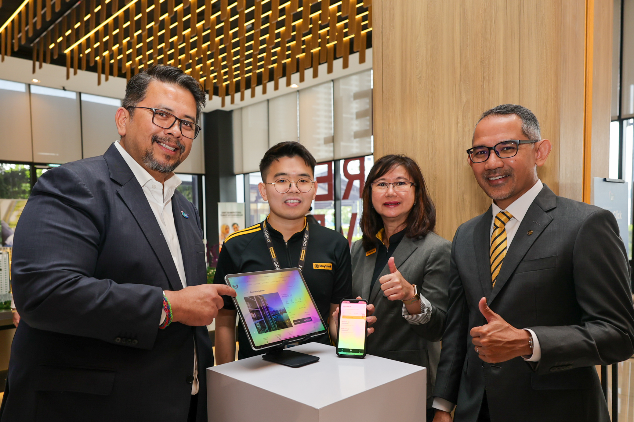 Sufian Abdullah (left) and Maybank community financial services group chief executive officer Syed Ahmad Taufik Albar (right) together with Maybank representatives at the HomeClick launch.